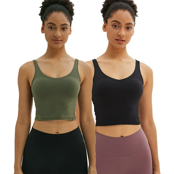 Dodoing 2 Pcs Women S Comfy Sports Bras Padded Gym Workout Longline Crop Top Sleeveless Running Yoga Crop Tank Tops Walmart Com Walmart Com